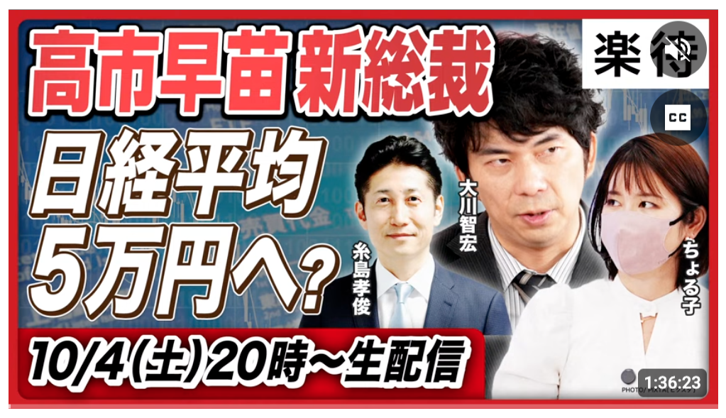 高市総裁になったことで、YoutubeやXでも週明けの株式相場が大相場になると見ている人が多い印象です。