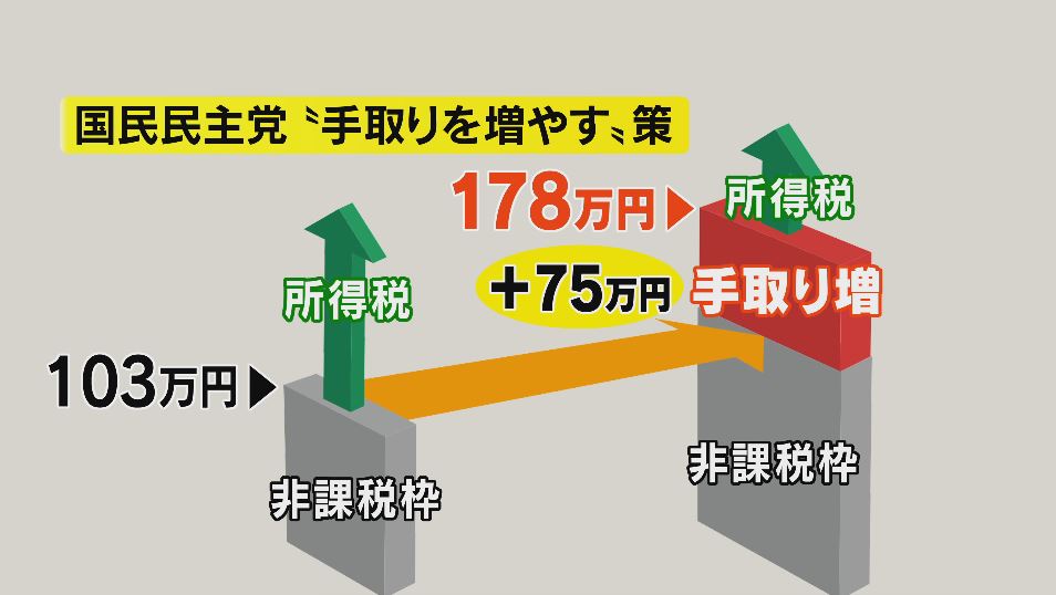年収の壁の引き上げが達成されれば、年末の働き控えが解消され、世帯の手取りが増えます。