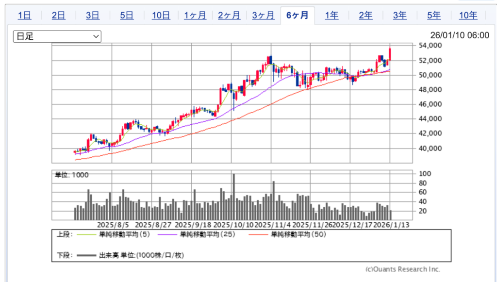 +6,050 (+10.67%)となり日経平均株価を大きく押し上げました。