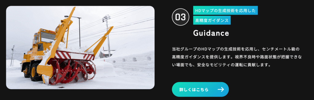 高度な3D地図がデータ化されていることから、大雪で道路や電柱、ガードレールなどが見えなくても、データ上で把握ができるため除雪作業ができます。